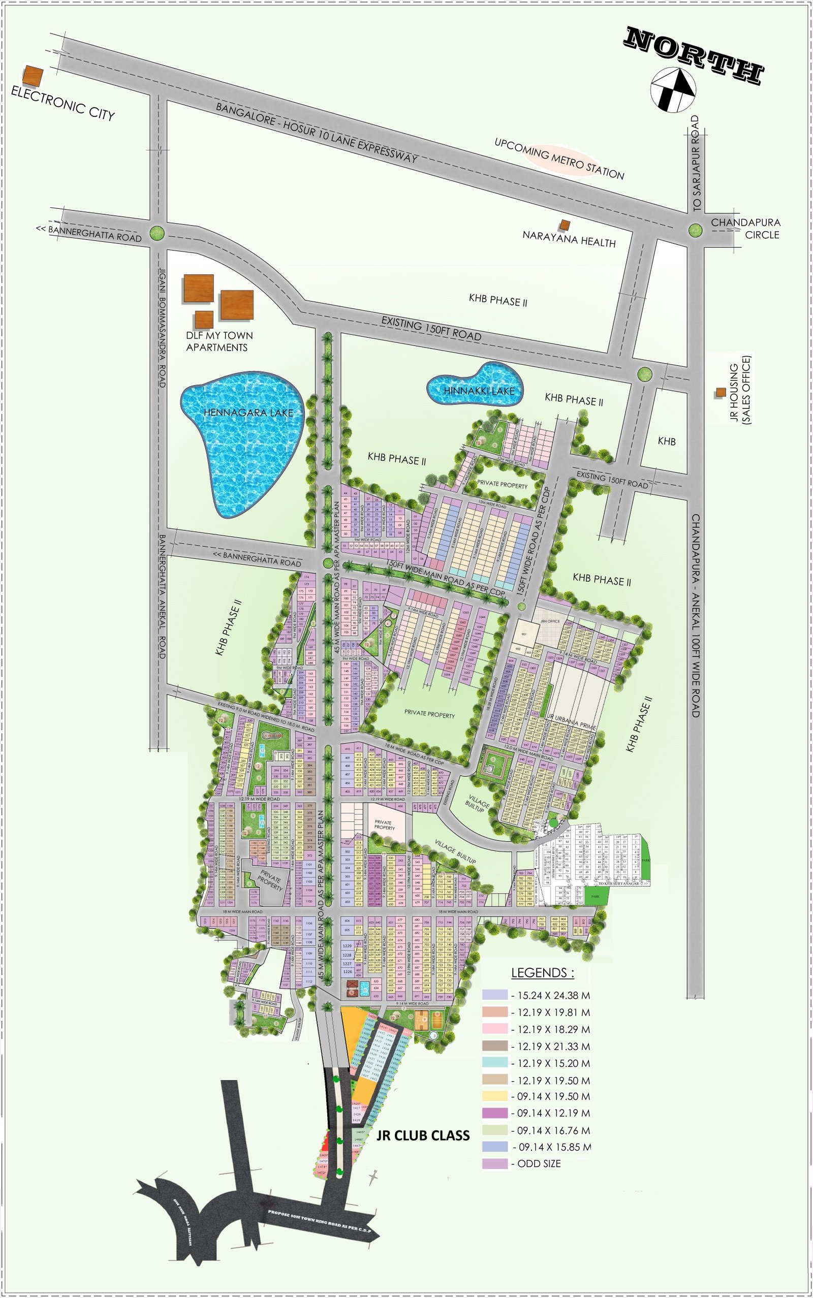 Welcome to JR Club Class,a premium extension of Urbania, where luxury living meets eco-conscious design in the heart of Bangalore's prestigious KHB Suryanagar Phase-2 suburb. Part of 100 acre development, our premium plots in Bangalore are crafted with a vision for a sustainable future and a focus on family-friendly living. Presenting first of its kind, 10 lane roads with bicycle tracks inside a BMRDA residential plotted community and our premium plots for sale in Bangalore, near Electronic City is conveniently located to ensure that you are well connected to educational institutions, work, metro station, healthcare and entertainment.